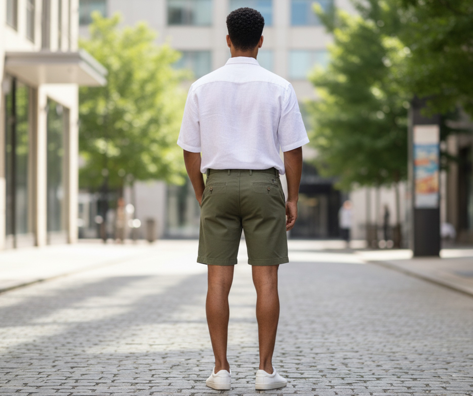 Chino shorts embody the perfect balance between comfort and versatility. Rooted in classic tailoring, they reflect a philosophy of timeless, easygoing style that can seamlessly transition from casual outings to semi-formal occasions. Designed with practicality in mind, they provide a clean, sharp look while ensuring maximum comfort, making them an essential piece in any modern wardrobe.
